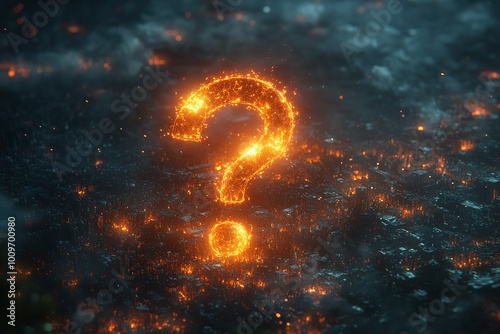 A conceptual representation of thought, featuring an abstract technology background and a 2D illustration of a question mark.