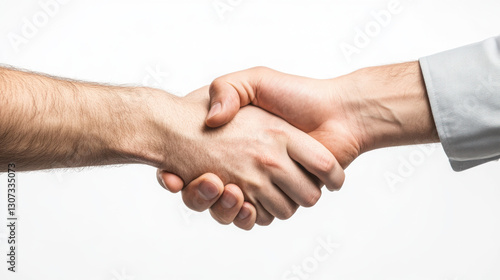 A confident business leader shaking hands with a colleague in a contemporary office environment