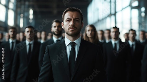A Confident Leader Standing Before His Team, A Powerful Image of Unity and Determination