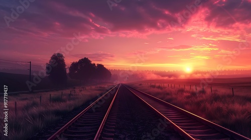 A contemporary railway journeying towards dusk