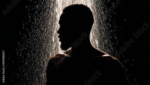 A cooling shower scene featuring a black African-American man in silhouette with refreshing water pouring over him