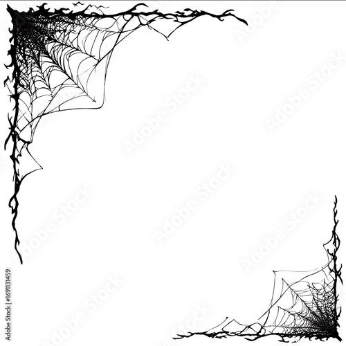 A cornerpositioned spider web bold outline strokes stylized with clean arcs and angles minimal detailing No background highcontrast black lines Created Using