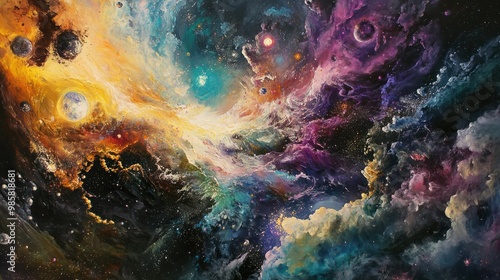 A Cosmic Dance of Nebulas and Stars in a Galaxy