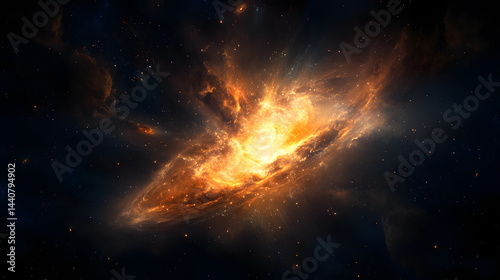 A cosmic rift where two galaxies collide, forming an explosion of light.