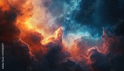 A cosmic scene with swirling nebulae in vivid shades of blue, purple, and red, interspersed with countless stars, creating a sense of depth and vastness in space.