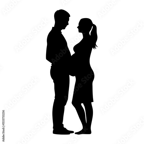 A couple and wife pregnant full black silhouette vector illustration design