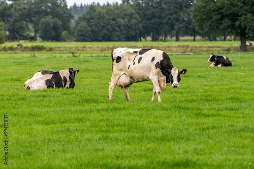 a cow in the meadow on the green grass