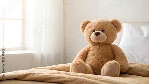 A Cozy Brown Teddy Bear Sits On A Bed With Natural Light Streaming Through A Window