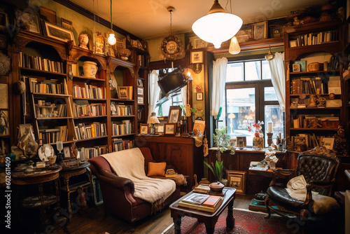 A cozy corner of the vintage store adorned with antique furniture and shelves filled with vintage books, inviting visitors to immerse themselves in the charm of the past Generative AI