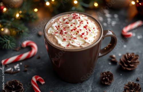 A Cozy Cup of Hot Chocolate Surrounded by Christmas Cheer