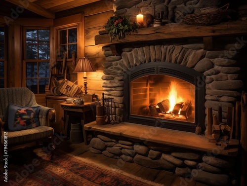 A Cozy Evening by the Fireplace in a Rustic Cabin