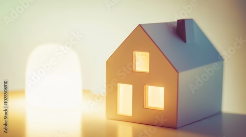 A cozy paper house model illuminated softly, representing warmth and comfort in home decor. Ideal for creativity and design themes.