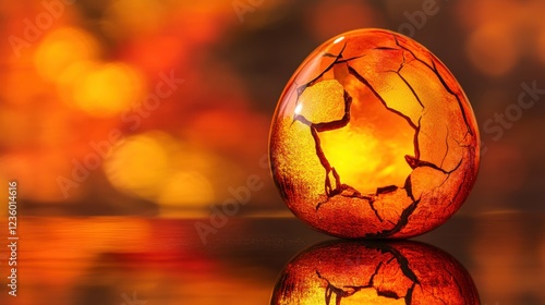 A cracked golden egg on a reflective surface, symbolizing economic uncertainty and broken savings