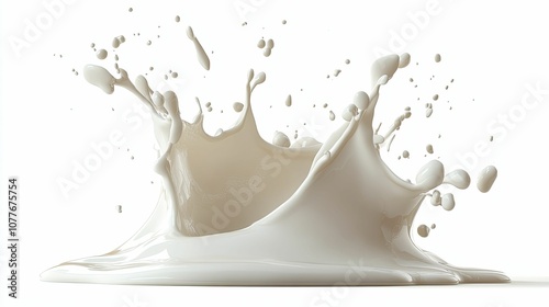 A Creamy White Liquid Splashing and Spreading on a White Background