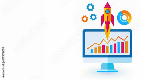 A creative 2D illustration on the theme of skyrocketing sales. skyrocket conceptual