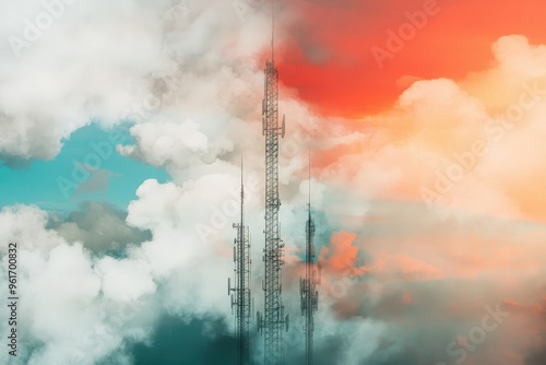 A Creative Depiction of Long-Distance Communication Amidst Vibrant Clouds and Dusk Colors