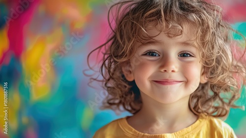 A creative studio portrait of a child, with a colorful background and playful expression.