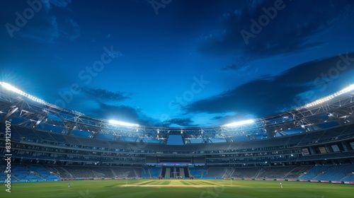 A cricket stadium integrating sustainable technologies like solar energy and rainwater systems