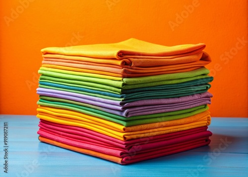 A crisp stack of freshly laundered napkins lies neatly folded on a vibrant colored background, evoking a sense of cleanliness and organization.