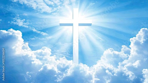 A cross formed by rays of sunlight breaking through the clouds, symbolizing divine guidance from the heavens.
