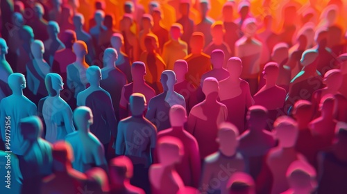 A crowd of multicolored 3D-rendered human figures stand together, creating a vibrant, abstract representation of community.