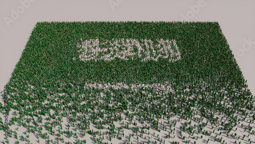 A Crowd of People gathering to form the Flag of Saudi Arabia. Saudi Arabian Banner on White.