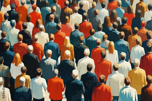 A crowded job fair with long lines of nervous people, anxiously waiting for interviews, reflecting the challenges of unemployment and social stress. Generative AI