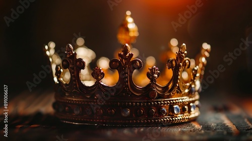 A crown sitting on top of a wooden table.