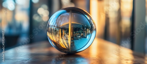 A Crystal Ball Reflecting an Interior Scene with Blurred Background