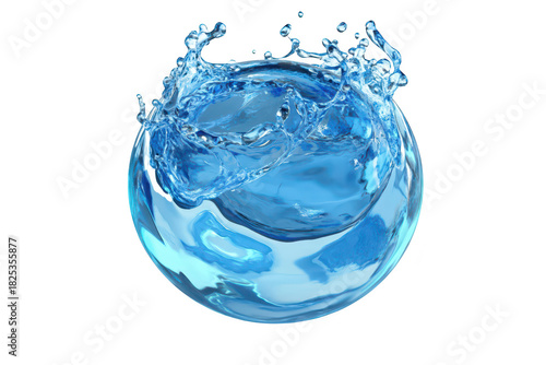 A crystal-clear glass fishbowl filled with water. a dynamic splash effect. surrounded by a pristine white background. ideal for aquatic-themed designs and advertisements