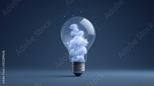 A Crystalline Idea Light Bulb Filled with Sparkling Ice Crystals against a Dark Blue Background