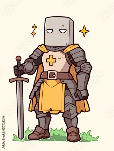 A Cuboid Headed Knight Stands Proudly With His Sword