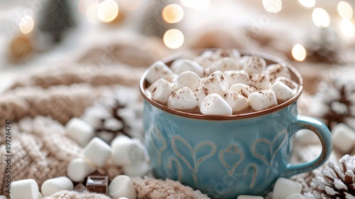 A cup of hot chocolate with marshmallows on a cold day