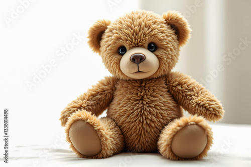 A cute and cuddly teddy bear sitting upright, looking directly at the viewer with big, adorable eyes.