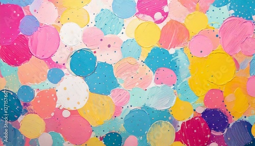 A cute and friendly abstract background featuring polka dots, doodles, and soft brush strokes in pastel pinks, blues, and yellows. The design feels fun, artistic, and imaginative
