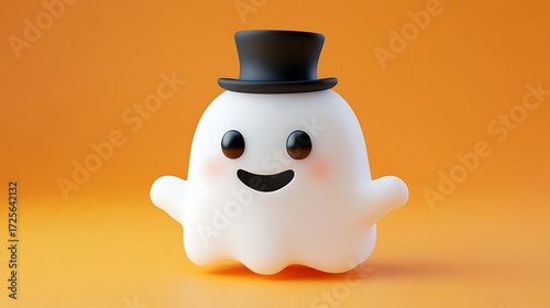 A cute and funny ghost with wearing hat isolated on the yellow background