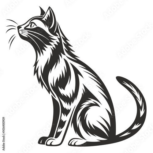 A cute black and white kitten vector illustration depicts a domestic feline animal in a cartoon art style