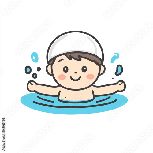 A cute cartoon illustration of a baby swimmer swimming in the pool.