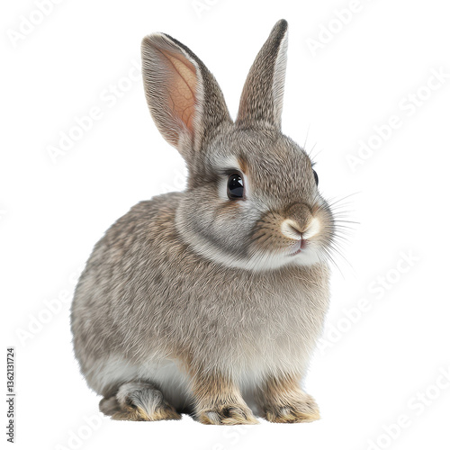 a cute, fluffy rabbit looking directly at the camera. The rabbit has soft, gray fur, long ears, and bright eyes.