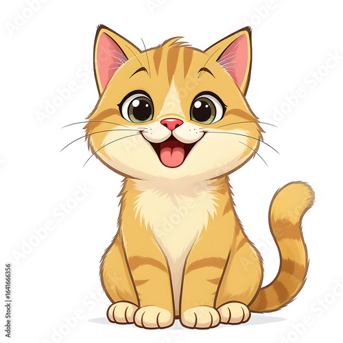 A cute ginger tabby kitten is sitting and smiling happily a cartoon illustration of a domestic pet