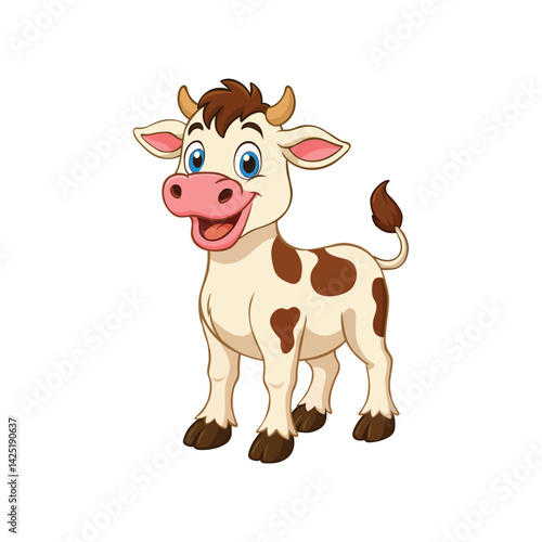 A cute highland cow doodle on a white background, showcasing a healthy, funny farm animal. This creative vector illustration features a bull, calf, and nature-inspired farming vibes.