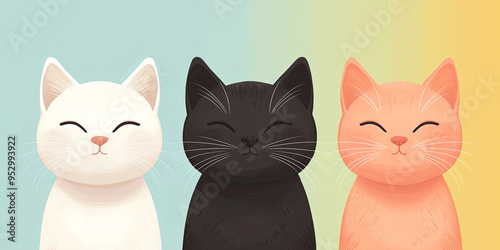 A cute illustration of three cats, generative AI