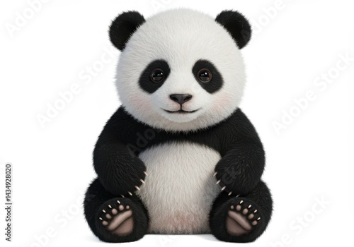 A cute panda bear sitting upright with a gentle smile isolated on white background