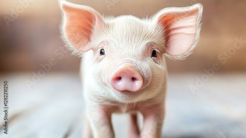 A cute small pig with large ears and a charming pink nose, set against a clean, minimal background.