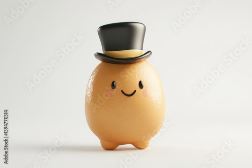 A cute, smiling, egg-shaped character wears a top hat, standing on a white background.