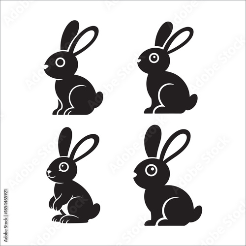 A cute vector set of cartoon rabbits with colorful eggs and carrots for a fun Easter design