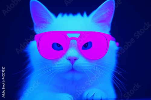 A cute white cat in sporting stylish pink sunglasses. The feline exudes a cool and fashionable vibe as it poses for the camera