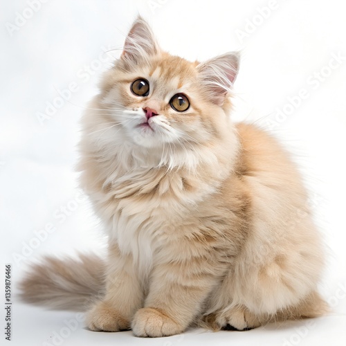 A cute, young British kitten with tabby fur, isolated on white, is a beautiful portrait of the domestic feline breed