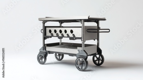 A cutting-edge cart featuring multi-directional wheels, intricate internal mechanisms, and matte metallic finishes, highlighted in a professional photo on a white background.