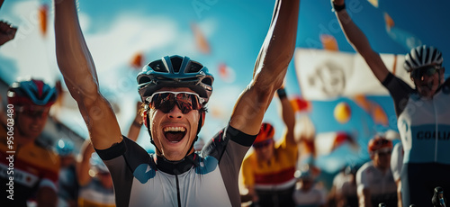 A cycling athlete expresses his joy at winning the competition